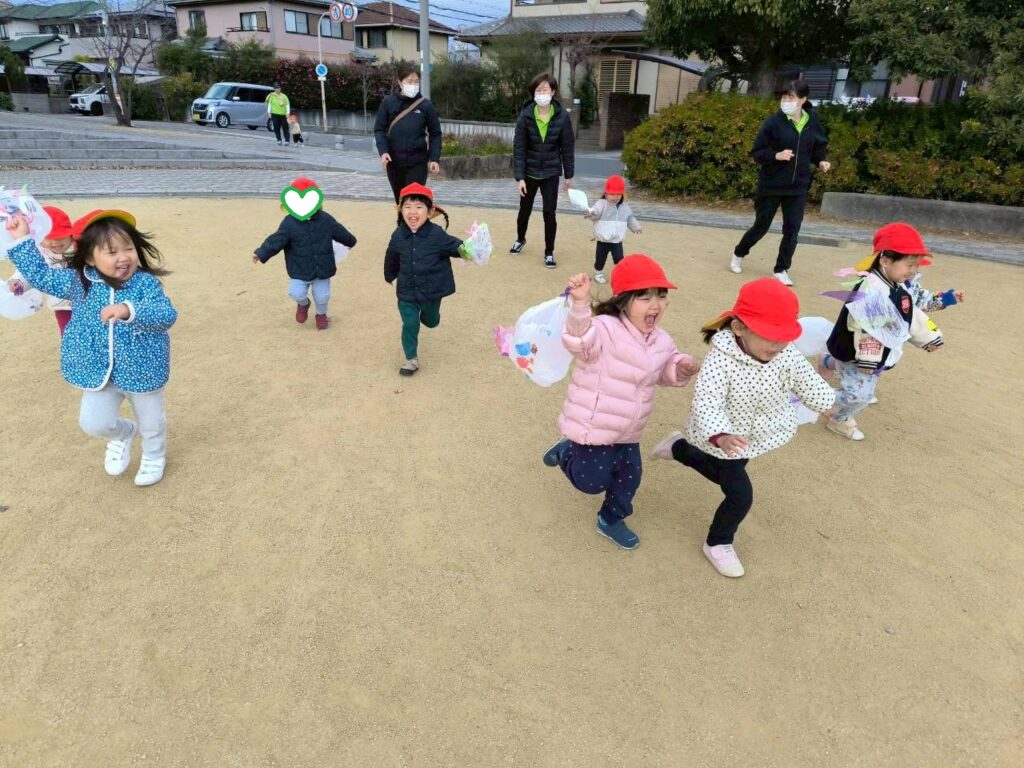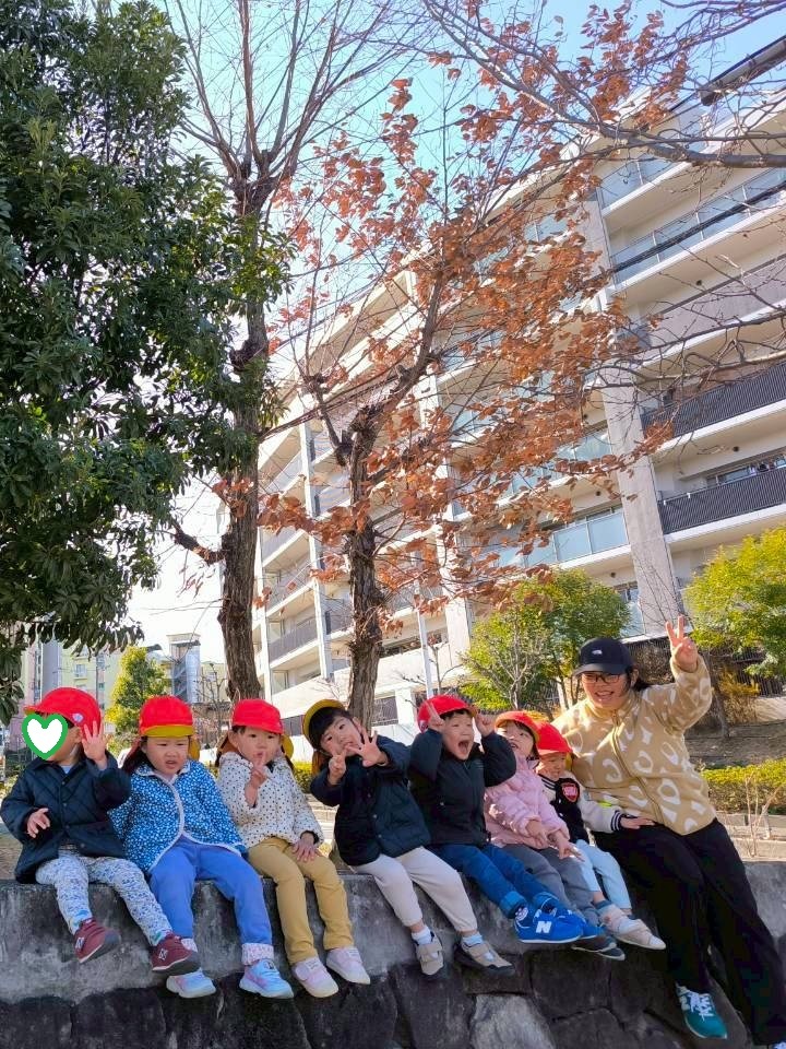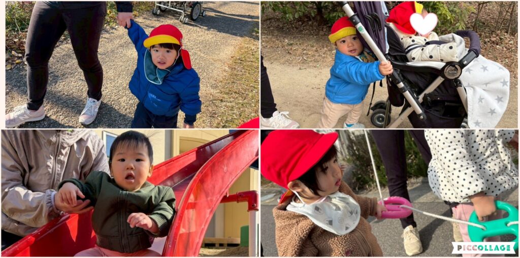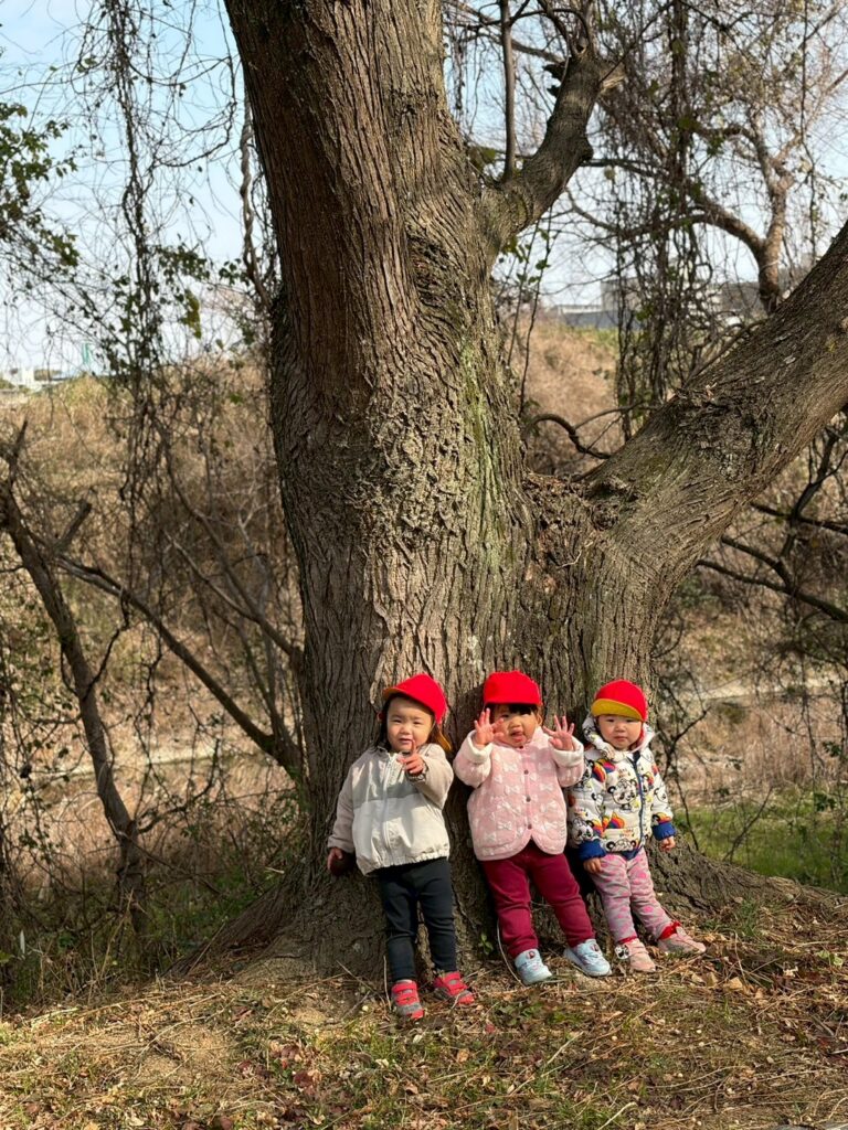 お外は大好きで、アイ保育園の周りには槇尾川遊歩道もお散歩コースになっています🌝