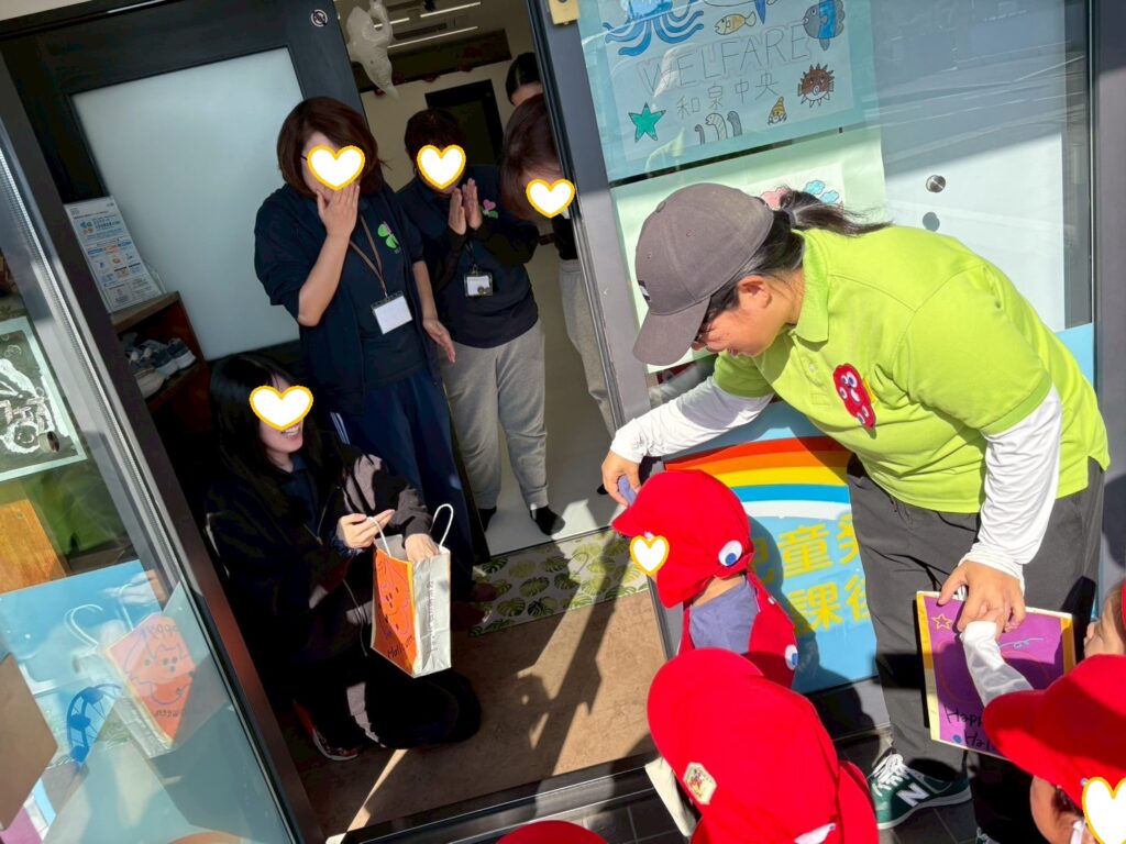 同じテナントの、児童発達支援放課後等デイサービス welfare和泉中央様・美容室のフレッサ(fresa.15)様・ニイハラ鍼灸整骨院様にもご協力いただき子ども達と一緒に訪問しながら「Trick or Treat🎃👻」とお菓子を貰いに行きました🍭🍬