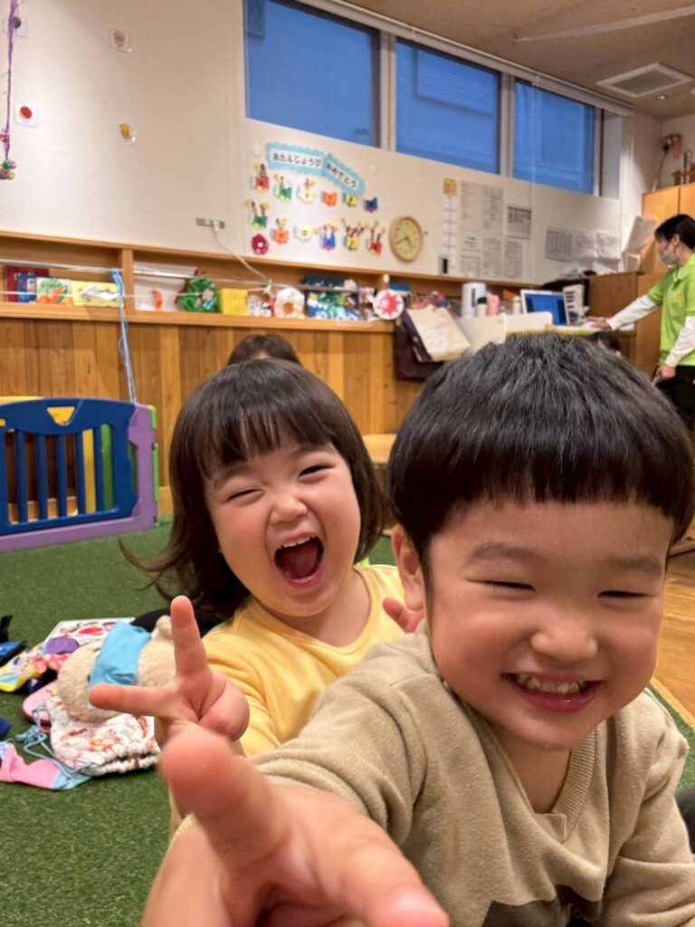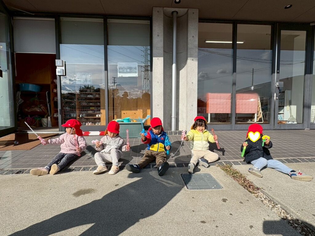この後給食までの時間、もらったおもちゃで沢山遊びました!