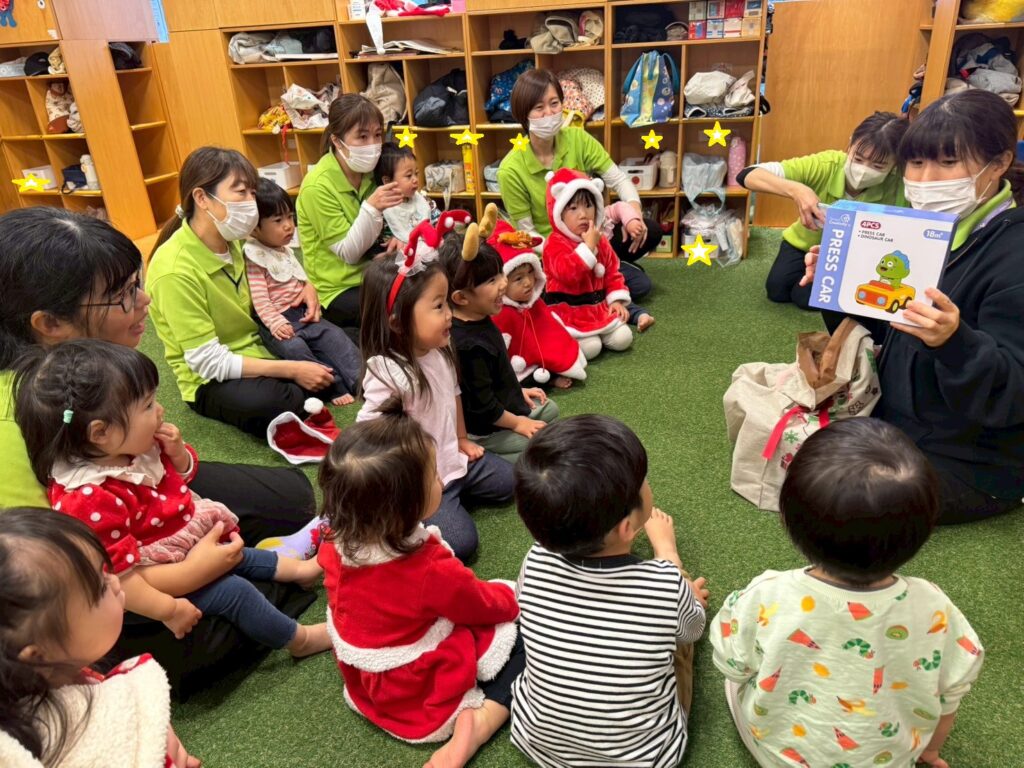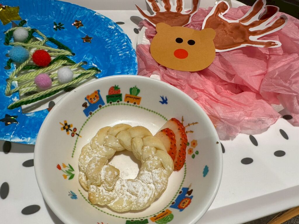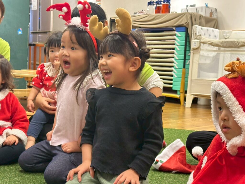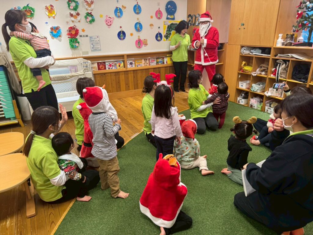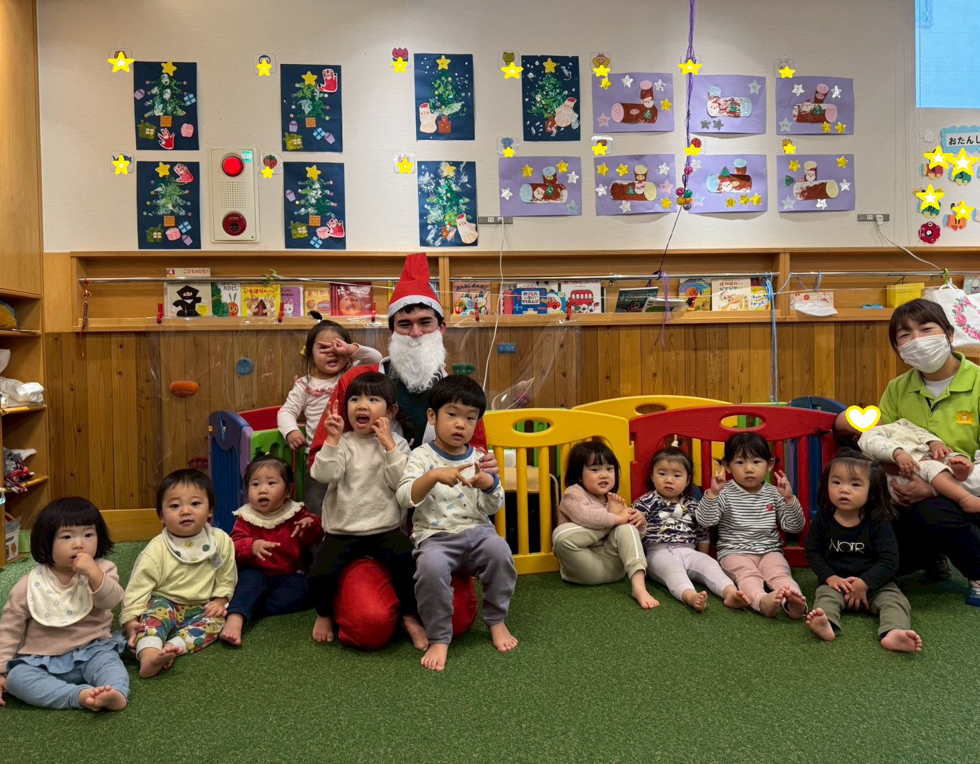25日のクリスマス会は、みんなでゲームやお歌を歌っているところサンタさんの登場!